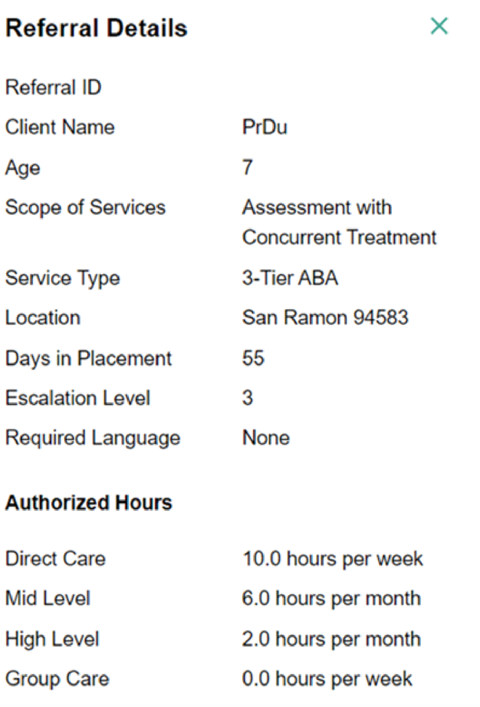 Additionally, Assessments with Concurrent Treatment referrals are now also displayed the recommended hours section of the provider portal. When submitting offers for dual service referrals, you will continue to submit your offer as you normally would for a treatment case. Please provide your capacity to accept full or partial, along what the first offer start date.